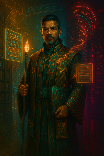 When he appears in a spread, the querent is invited not merely to seek truth, but to ritualize their seeking. He is the transmitter of encoded frameworks: religious, philosophical, ethical, or magickal. The Mark, having passed through emotional fertility and structural emergence, now encounters the Logos; itself housed within a teacher, a counselor, a text, or a channel.